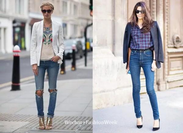 百搭的牛仔褲配上西裝,正式中也追求舒適。相比西褲,牛仔褲抹去了幾分西服的銳利棱角,更親和更街頭。潮流感十足的藍色破洞牛仔褲打破西裝的單調和嚴肅,同時也讓小西裝多了一絲高級范兒。